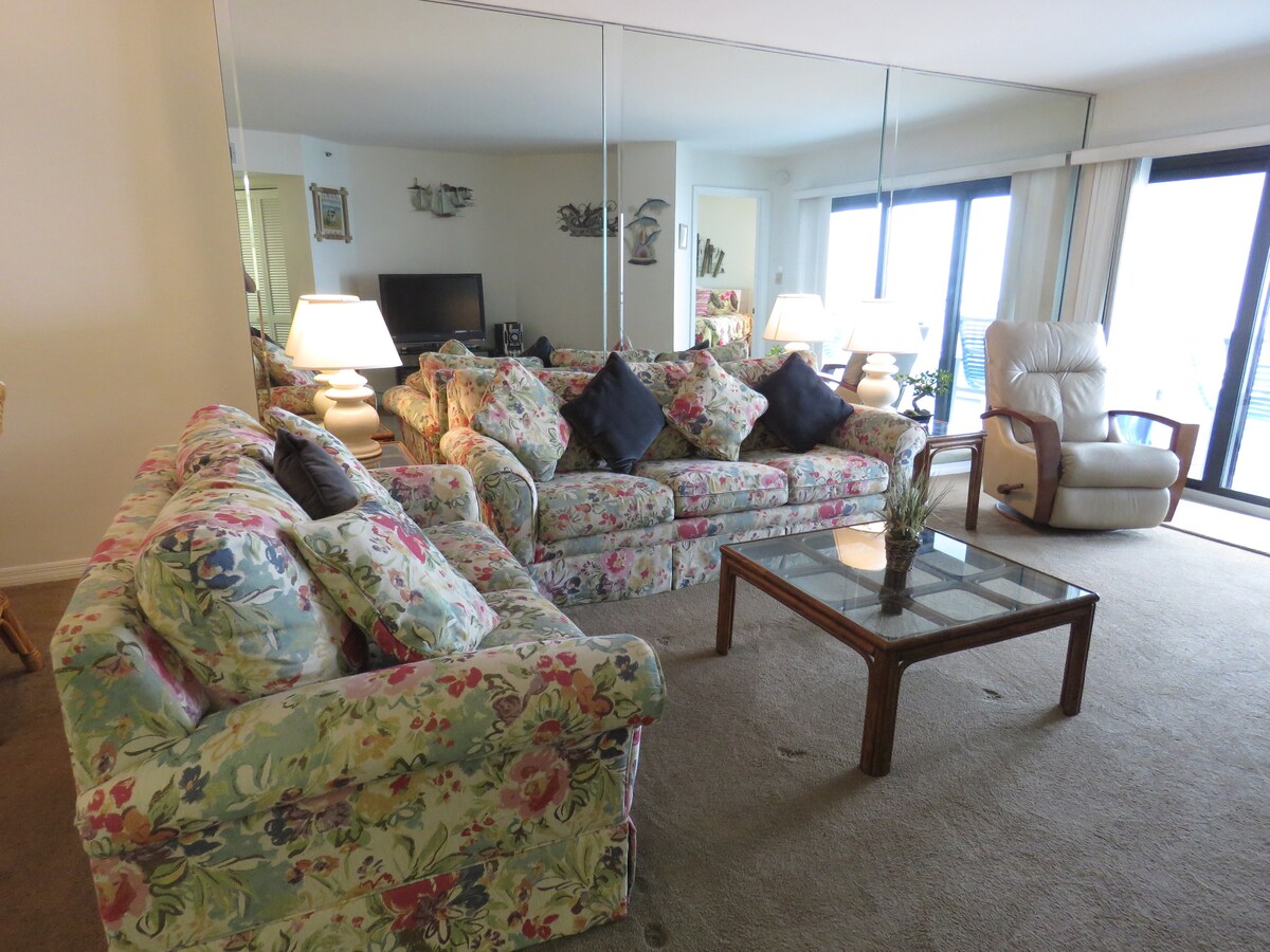 カップルや4人家族に最適な居心地の良いスタジオリトリートです。キングサイズベッドとソファベッド、フルキッチン。4階にあり、夕日と街の景色が見えます。リゾートはオーシャンフロントにあり、食料品店、ウォルグリーン、小売店、アイスクリームパーラーやピザなどのダイニングオプションを提供する大きなショッピングプラザのすぐ向かいにあります! **お知らせ**プールは閉鎖しています!ビーチアクセスとたっぷりの日差しがあります