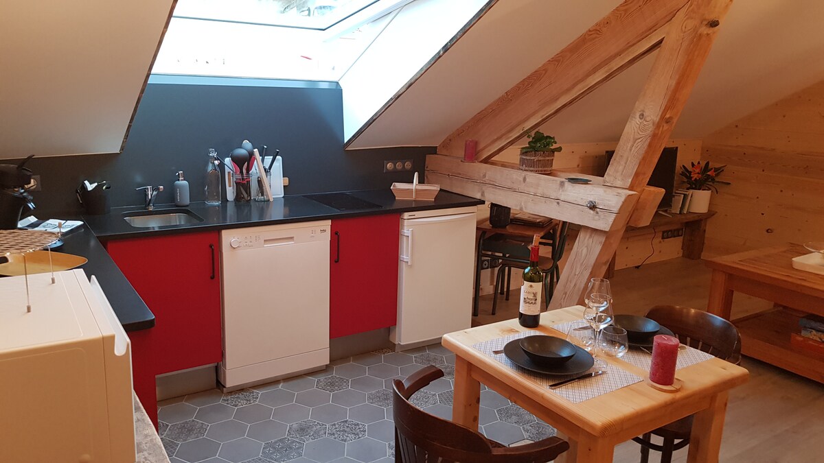 「ラ・ファブリック」は、コルマールやアルザスのブドウ畑の近く、ボーロン・デ・ヴォージュ自然公園の中心に位置する、魅力的なミュンスターの小さな町にあります。 ハイキング、周辺地域やクリスマスマーケット観光、ピアノ演奏、テレワーク、庭や暖炉の前でのくつろぎに最適な場所です。駅に近く、バリアフリー、100%再生可能エネルギー。大人2名+大きな子供/ティーンエイジャー1名(メザニン)および/または幼児1名(リクエストに応じてベビーベッド)に適しています。