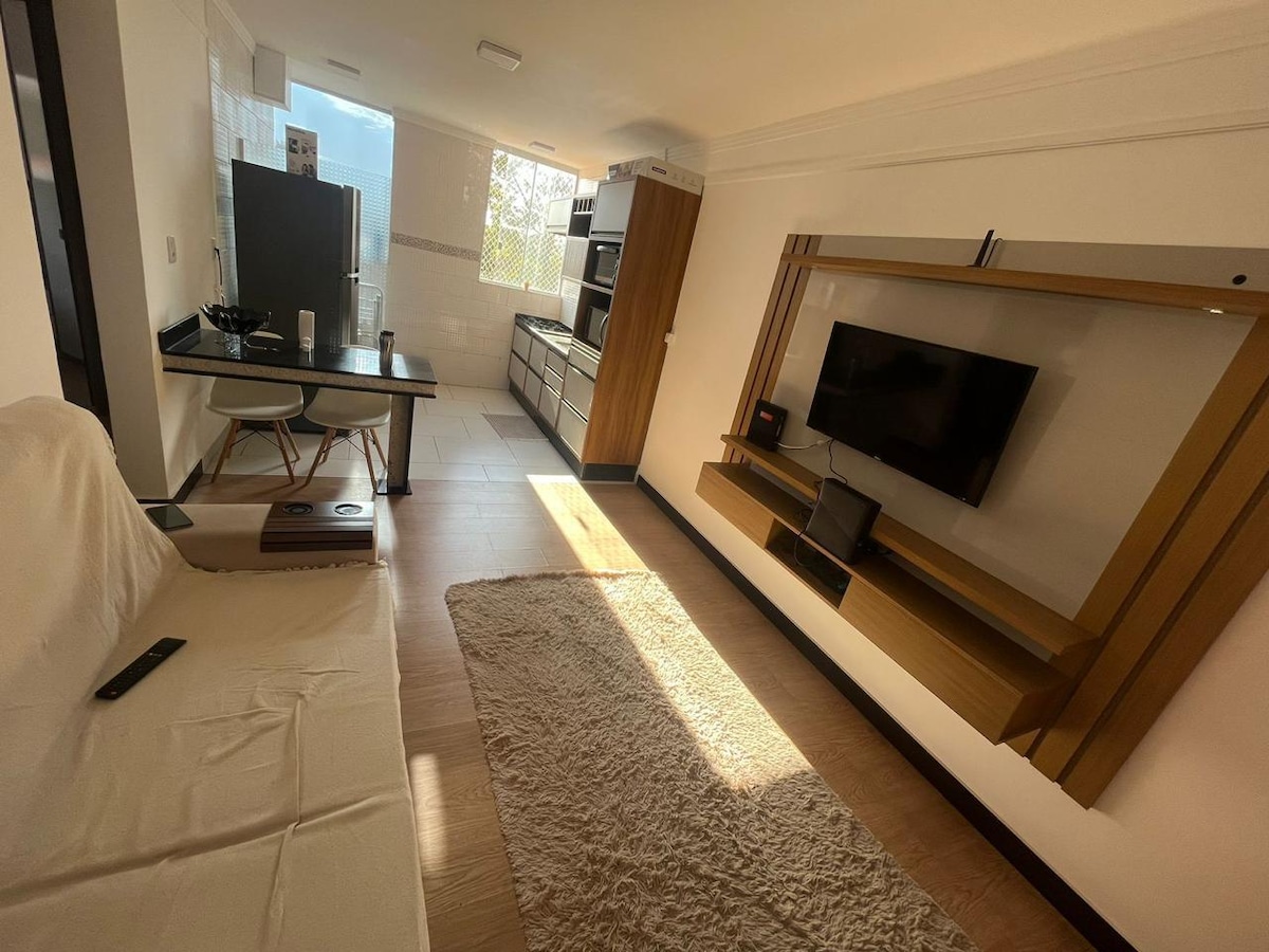 Bloco único, elevador. Apt todo mobiliado.