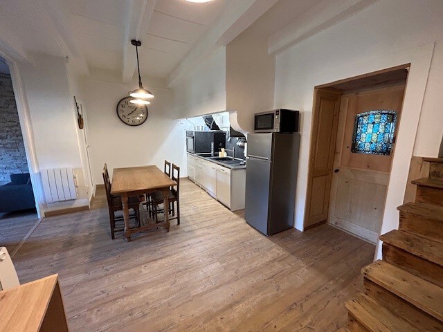 露出した石と16世紀の暖炉を備えた60㎡の美しいアパートを改装しました。すべてのモダンな快適さを備えたフレンドリーで温かみのあるコンテンポラリーなお部屋です。 テレビとWi - Fi付きの快適で広いリビングルームに向かって開放された設備の整ったキッチンがあります。 ベッド160台の独立した部屋、タオル乾燥機付きシャワールーム。専用エントランス、駐車場、テラス。木材をご用意しています。