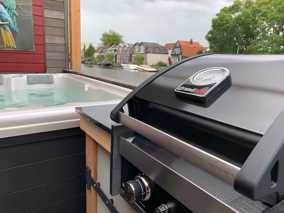 日当たりの良いパティオ付きの快適なモダンハウスボート