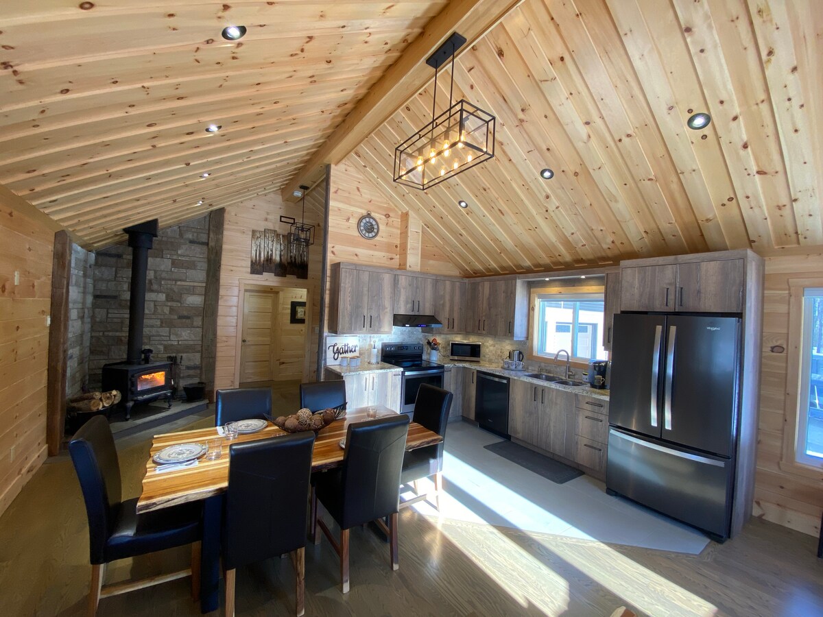 この忘れられない最高評価のキャビンに泊まるチャンスをお見逃しなく!手つかずの自然に囲まれています。プライバシーが確保され、トレイルにアクセスできます。 マダワスカバレーの中心部にあり、トボガニング、ビーチ、湖、ボート、ゴルフ、クロスカントリースキーに近く、アルゴンキン公園からすぐです。 この手作りのキャビンは、敷地内で伐採した丸太と木材で作られており、温水、テレビと映画、コンロと冷蔵庫を備えた美しいフルキッチン、フルバスルームを完備しています。