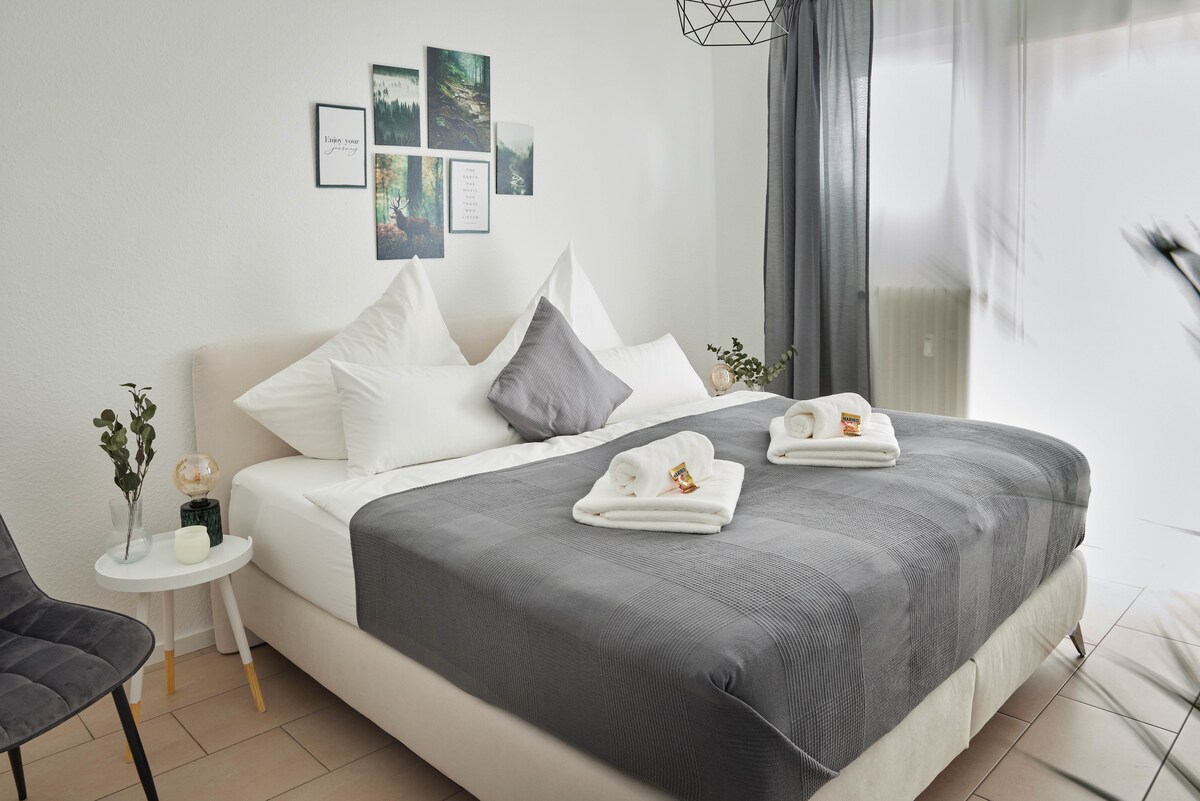 このスタイリッシュな宿泊施設は、家族、カップル、または3人から6人の友人に最適です。上品に装飾された家は、ガルテンシュタット地区にあります。バス停、スーパーマーケット、薬局、郵便局がすぐそこにあります。ルートヴィヒ港の中心部に近いにもかかわらず、とても静かな場所にあります。プファルツの森ツアーの出発点として適しています。南国の魅力を持つ静かなオアシス。