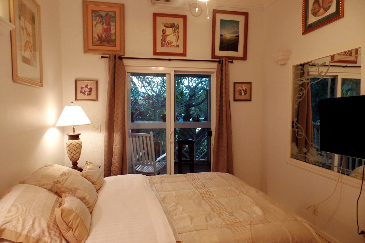 カパアの「オールドタウン」の端にあり、レストラン、かわいいお店、カウアイで一番のかき氷まで徒歩圏内です! 私たちのコンドミニアムには、ゴージャスなオーシャンビュー、私の新鮮な蘭、爽やかな貿易風のそよ風、そして美しい日の出があります。 ラナイでリラックスしたり、数歩歩いて泳いだりシュノーケリングをしたり、有名な海岸沿いの道を散歩したりできます! もっとお金を使うこともできますが、これ以上ビーチに近づくことはできません! ハワイの税金は料金に含まれています!