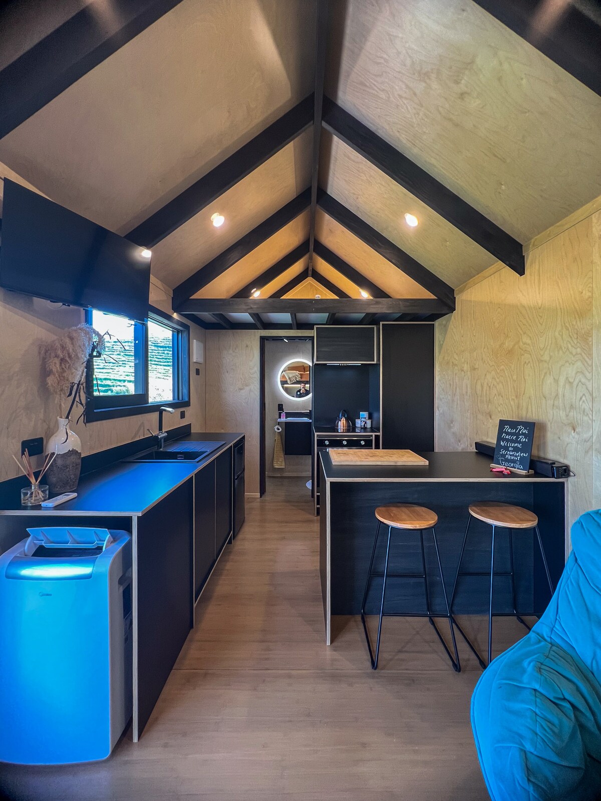 ユニークで静かな宿泊先で、快適でロマンチック、自然に浸りながらリラックスしましょう。 ラグランのホエールベイの原生林の丘陵地帯にある、穏やかな小川の隣にあるオープンプランのワンルームです。 ウェールベイのインディケーターズまたはアウトサイドインディケーターズまで徒歩6分、マヌベイまたはンガルヌイビーチまで車で数分です。 美しい暖炉、モダンな断熱材、大きな二重ガラスの引き戸があり、暖かく居心地が良いです。 ヒートポンプで15分以内にスタジオを暖めます。