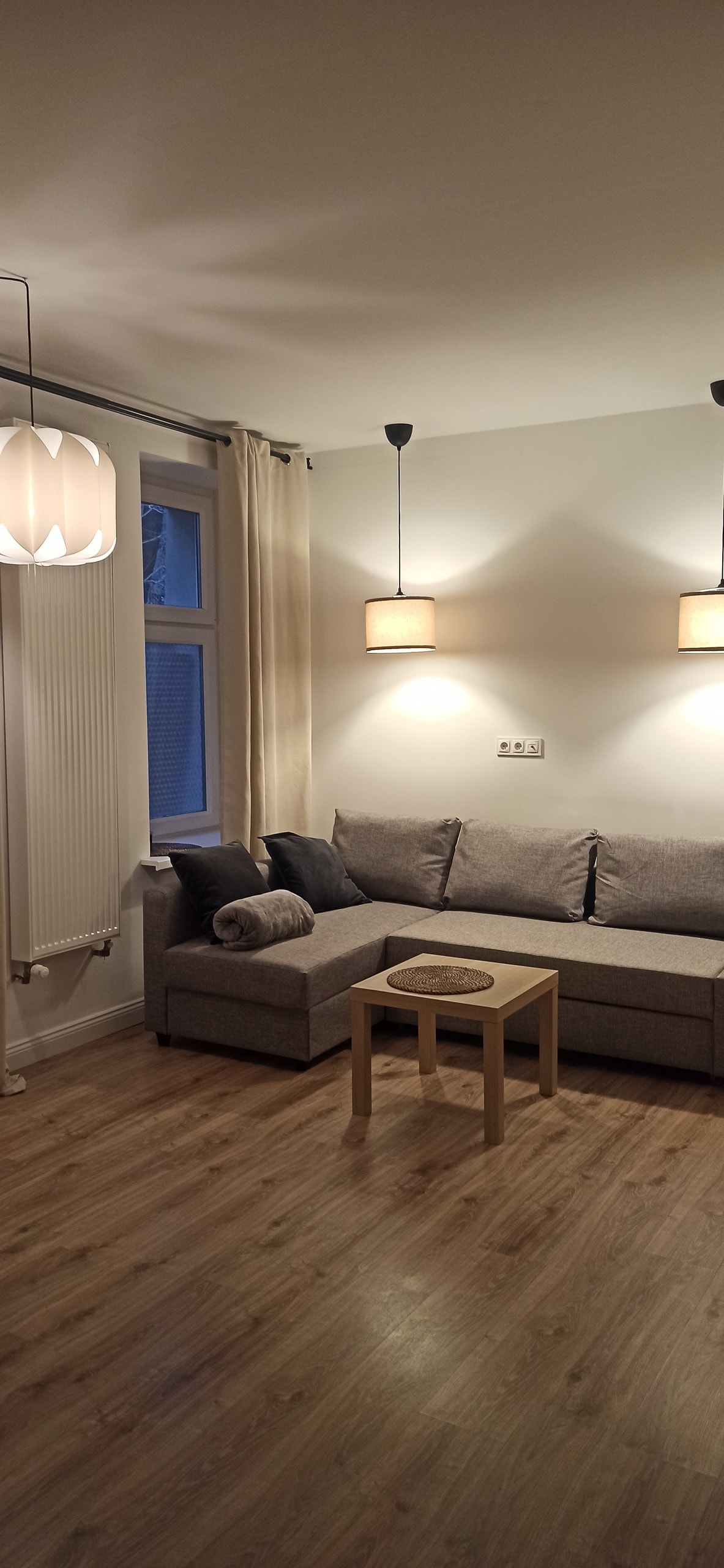 高い天井、大きな窓、コンクリート製フロアヒーティングを完備した45平方メートルのアパートです。 リビングには快適なソファ、ダイニングエリア、広いキッチンがあり、ヴィンテージの木製家具とたくさんの植物が置かれています。 リビングルームの中二階には、ダブルベッド(160 x 200 cm)と追加のマットレス(140 x 200 cm)が備わった寝室があります。 広々としたバスルームにはバスタブがあります。