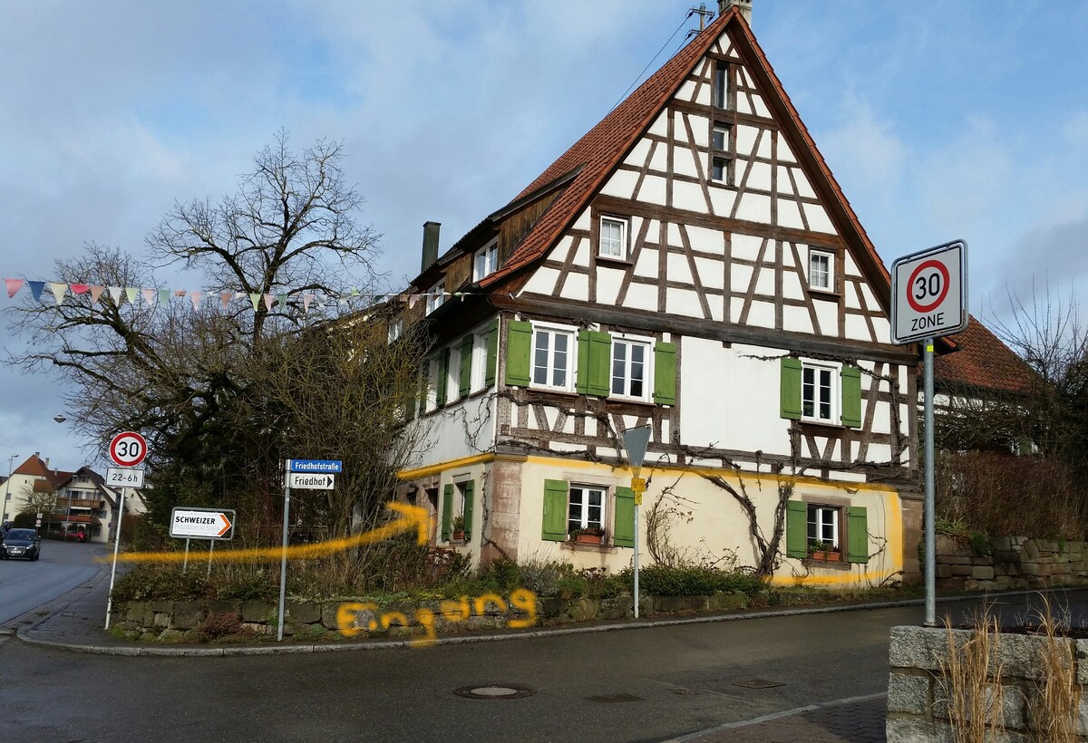 Attention radar trap, 30 km/h.The appartment ist located 3 min from highway A81 at the main street of Empfingen.There is a lot of traffic noise during the working days (windows with noise protection!). About 1 hour to the lake of Constance, 50 minutes to Stuttgart. 12 Min to the historic town Horb.About 35 min to Tübingen and Rottenburg. In our village there are 2 bakeries, a butcher's shop, 3 restaurants and 2 supermarkets. The parking place is situated about 5m from appartments entrance.