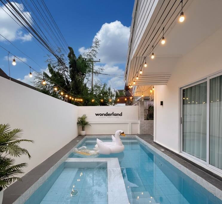 房源概况 这栋独栋泳池别墅位于芭提雅中天区域,设有 四卧五卫,每间卧室均配备独立卫生间,保障客人私密性。别墅全新装修,空间宽敞明亮,配有独立庭院与私人泳池,可舒适容纳 8–10人,非常适合家庭、朋友聚会或团体度假。 地理位置 别墅距离 中天海滩约800米,步行即可到达。小区周边 300 米内拥有餐厅、咖啡店、药店和便利店,生活便利。驾车可快速抵达主要景点: • 5分钟:中天夜市、周末夜市 • 10分钟:Central 百货、唐人街、Terminal 21、79 成人秀 • 15分钟:步行街、格兰岛码头、美人鱼网红餐厅 无论是海滩、购物还是夜生活,都能轻松安排。 房屋亮点 • 四间卧室均为独立套房 • 五个卫生间,多人入住也不拥挤 • 私人泳池与花园,定期维护 • 超大客厅和餐厅,适合聚餐和休闲 • 全屋空调、高速 Wi-Fi • 社区安静、安全,适合家庭入住 管家服务 提供 24小时管家服务,协助入住指引、路线导航 可选增值服务 提供曼谷/芭提雅接送机、包车服务、租车、包船出海、景点及秀场门票预订、私厨上门、上门烧烤、翻译等服务,让假期更加便利和轻松。
