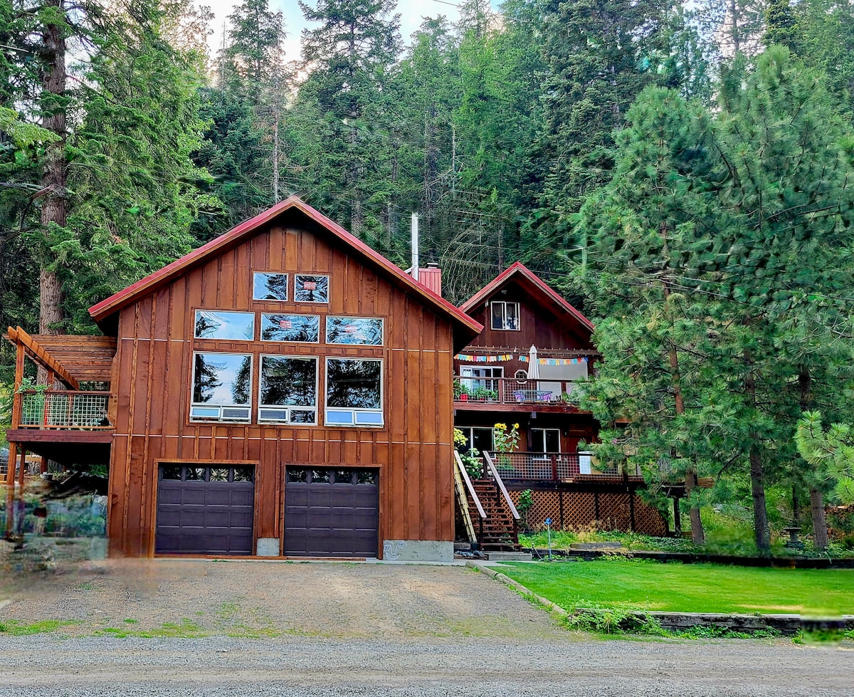 私たちのプライベートな山、湧き水、最新のキャビン、川とイーグルキャップの荒野を見渡すデッキをお楽しみください。光害も近隣住民もいないジャグジーは、夜間には素晴らしいです。この120エーカーの敷地内には野生動物がたくさんいます。薪ストーブ、焚き火台、デッキのヒーター、グリル/燻製器、調理器具!マスターベッドルームには、これまでで最も快適なベッドがあります。ゲストベッドルームには、クイーンサイズの2段ベッド2台と調節可能なワークデスクがあります。高速スターリンクインターネットWi-Fi。