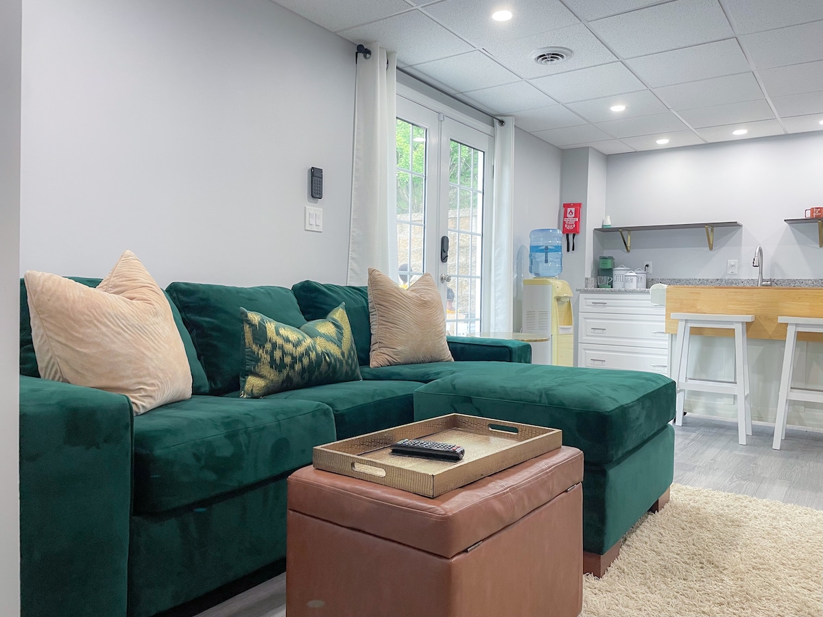 家族全員がのびのび楽しめる最高の宿泊先です。ぜひ、みなさまでお越しください。地下室全体には独立した入り口があり、広々としたリビングルームをご利用いただけます。ベッドルーム2室、専用バスルーム、専用ランドリー、簡単なお料理ができるキッチンエリア(現在コンロはありませんが、ホットプレートとエアフライヤーがあります)。また、穏やかな雰囲気のバックポーチでモーニングコーヒーを楽しむこともできます。ここで私たちが共有するのは私道だけです!