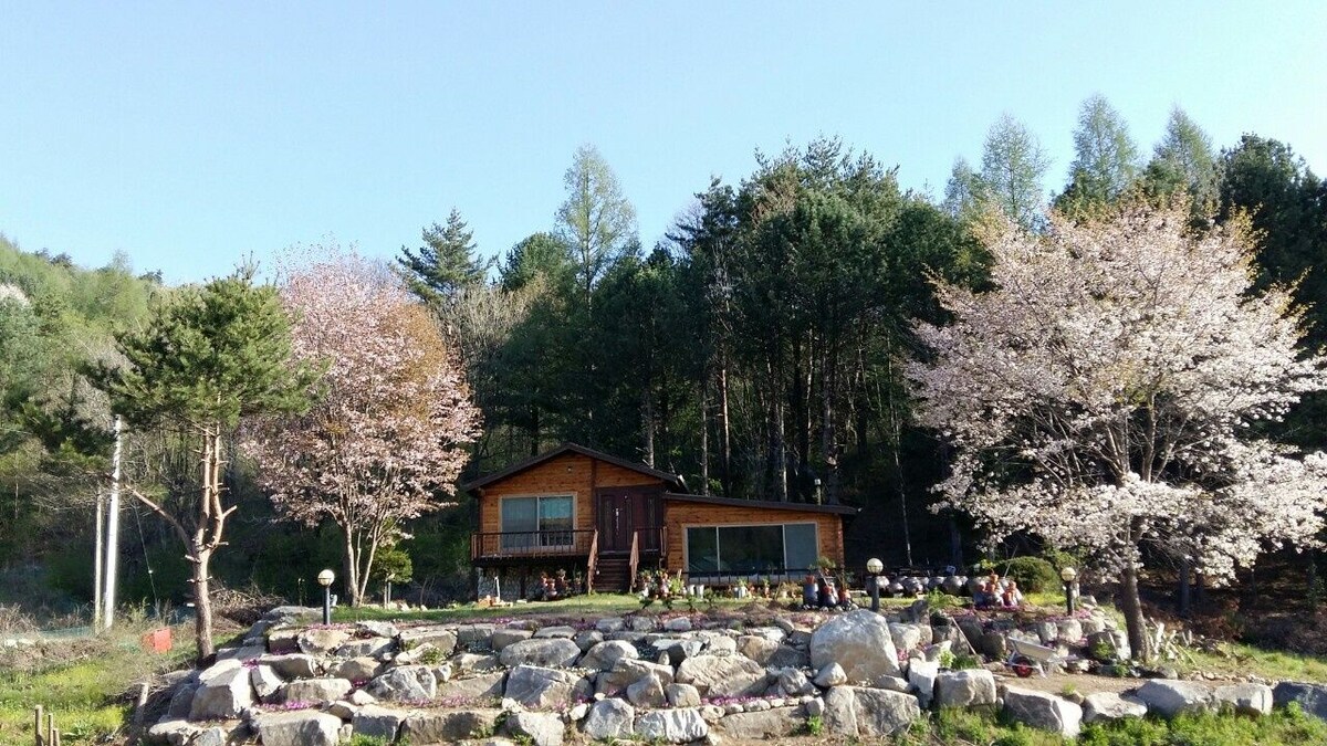 ◐子供(乳幼児)を含む最大7名様までご予約いただけます。♧私たちの宿泊施設は、消毒と衛生に最善を尽くします。♧韓国のアルプス、平昌大関嶺800高地に広がる青い羊の牧場と色とりどりの紅葉。冬の白雪景色で有名な善自嶺、最高の清涼な森と谷、穏やかな風が吹く平和な癒しの森である大冠嶺国民の森が窓の外に見えるプレミアム独身複層環境に優しい木造住宅であり、デッキの上で個別の屋外バーベキューを雪、雨が降っても楽しめるようにパゴラと風よけ、パーティー用の照明を設置しており、室内では65インチのスマートテレビスピーカーでNetflixの映画を無料で鑑賞でき、楽しいカラオケ機能も無料でお楽しみいただけます。大切な方々と一緒に、クラシックジニハウスで人生の余裕と美しい思い出を作りましょう。 車で1分のところに羊の牧場があり、近くには三陽牧場、ハヌル牧場もあります。車で15分のところに龍平スキー場とアルペンシアスキー場があります。特別な風の息を感じてください。江陵安木コーヒー通り、慶浦海岸も40分~45分の距離にあります^^