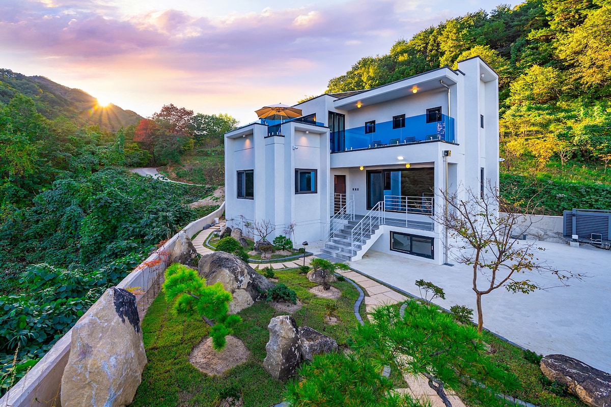 雨雪に関係なくいつでもバーベキューができる、居心地の良い感性的な宿泊施設です。 _Sunday Morning House Story 日常生活の休息と癒しのために用意した、私たち家族の居心地の良い感性的なセカンドハウスをオープンします。家族を思い、ゲストが満足できる空間を演出しました。ユニークなセモ形の18平方メートルの2階建ての一戸建てと5平方メートルの独立したデッキでバーベキューと休息を楽しむことができます。ピアノ、スティールタンドラム、シンギングボールの癒やしのサウンドで、日常生活に埋もれ忘れていた感性と余裕を見つけてください。ここで、日曜日の朝のようにゆったりとした幸せな時間をお過ごしください。 標高700メートルの大峯嶺は、四季折々の青い空と澄んだ風が吹く雲の上の地です。熱帯の夜がない夏は爽やかさ、冬は白い雪の花の村で異国情緒を味わえます。空と出会う展望台「安凡台」、トレッキングコースで有名な「国民の森」、天然の自然環境、近隣のいくつかの農場では、かわいい動物と温かい交流もできます。
