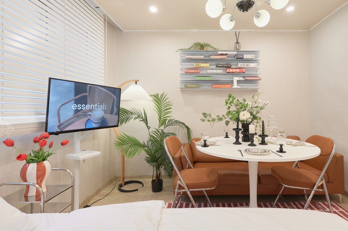 🏡 Moment Mansion 1F 一瞬が過ぎても、記憶はここに残る空間。 ソウルの黄鶴洞の静かな路地裏にあり、日常と旅の境界に位置する感性的な宿泊施設です。 古い集合住宅をリノベーションして作られたこの場所は 空間デザイナーが直接デザインしたレトロ&ニュートラルムードの客室で、 各階ごとに異なる色と雰囲気が、まるで一枚のフィルムのように続いています。 ソウルでの短い旅行中、一瞬一瞬が長く記憶に残ることを願っています。