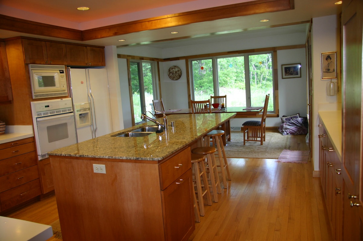 田舎の景色を楽しめる荒野のリトリート旅行。ウェストベンドのダウンタウンまで数分、歴史的なシーダーバーグまで車ですぐ!池と庭園を見渡せるプライベートデッキ。4エーカーの敷地内には、自然やバードウォッチングを楽しめる散歩道があります。ガス暖炉、バスルームの床暖房、ガゼボのパティオ暖炉など、快適なアメニティが揃っています!私たちの田舎のリトリートで、自宅のような心地よさとともに、平和とリラクゼーションをお楽しみいただけます。無料のNetflix。高速インターネット、リモートワークに最適です。長期滞在歓迎!