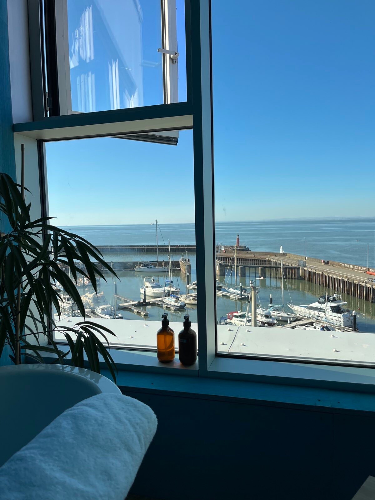 Treat yourself to a stay at this bespoke pod set above East Quay. Explore the galleries, chat to artists in their studios, eat at the delicious restaurant, and take in the incredible views of our Somerset coastline and Harbour. Pod 3 sleeps two and shines a spotlight on Watchet’s industrial past, with a 1930s ocean liner vibe. Enjoy our unparalleled views out to sea while relaxing in bed, or even while soaking in the bath from the tub on the mezzanine floor, at the highest point on East Quay.