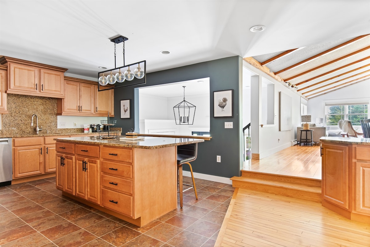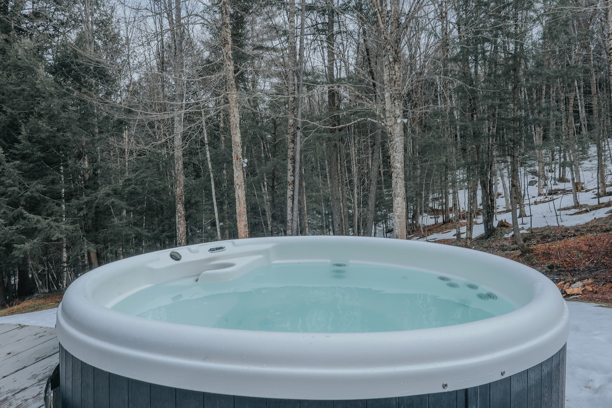 家全体を貸し切ります。 専用バスルーム付きの広い主寝室と、共用フルバスルーム付きの4名様用の寝室2室、引き出し式ソファがあるボーナスルーム1室。 改装済みのキッチン、プロパンガスストーブ(薪ストーブのように見えます)、屋根付きポーチ、エクササイズルーム、ゲーム、設備の整ったキッチン、ジャグジー(メモリアルデーから感謝祭までご利用いただけます)、屋外ファイヤーピット、すべて8エーカーの敷地内にあります。 3つのスキーリゾートの中心に位置し、マウンテンバイク、ハイキング、カヤック、水泳などを楽しむことができます。 どの季節でも魅力的な家です!
