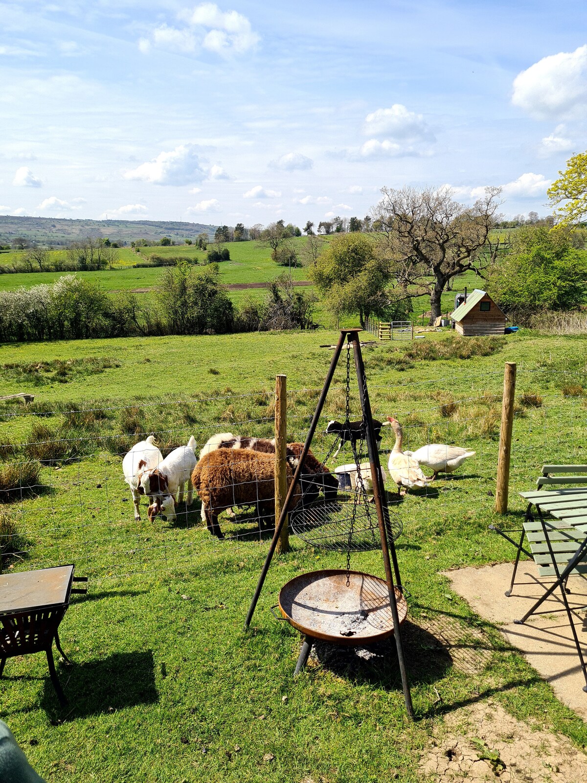 Lavender & Bee Shepherds Hut is set in a hay meadow with stunning views across the Manifold Valley. Think glamping not camping - The hot tub will be heated ready for your arrival. Festoon lights around the outdoor kitchen make a romantic setting for evening meals sat by the fire pit. A delicious breakfast hamper is provided for the first morning of your stay. Ensuite bathroom, organic toiletries and luxury linens add up to the perfect romantic getaway in the Peak District.
