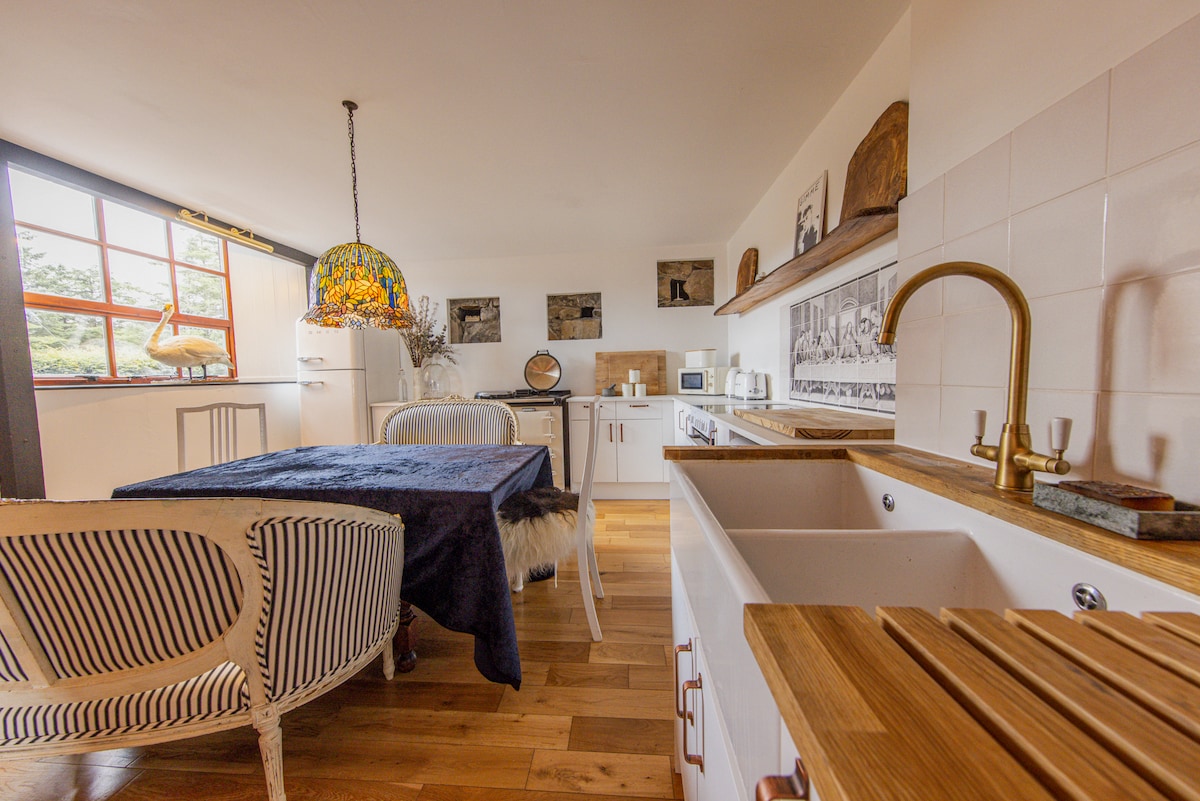 Tern Houseは、スカイ島の伝統的なホワイトハウスで、受賞歴を誇るハイランド建築家Dualchasによって近年修復・改装されました。 スカイ島の北西部、ウォーターニッシュの中心部に位置し、最大6名様まで宿泊可能です。半島からアウター・ヘブリディーズまでの素晴らしい景色を楽しめます。 忘れられないロケーションにある、モダンで環境に優しいファームハウスの自炊キッチン。 ミシュランの星を獲得したレストラン「ロックベイ」があるスタイン村まで徒歩わずか8分です。