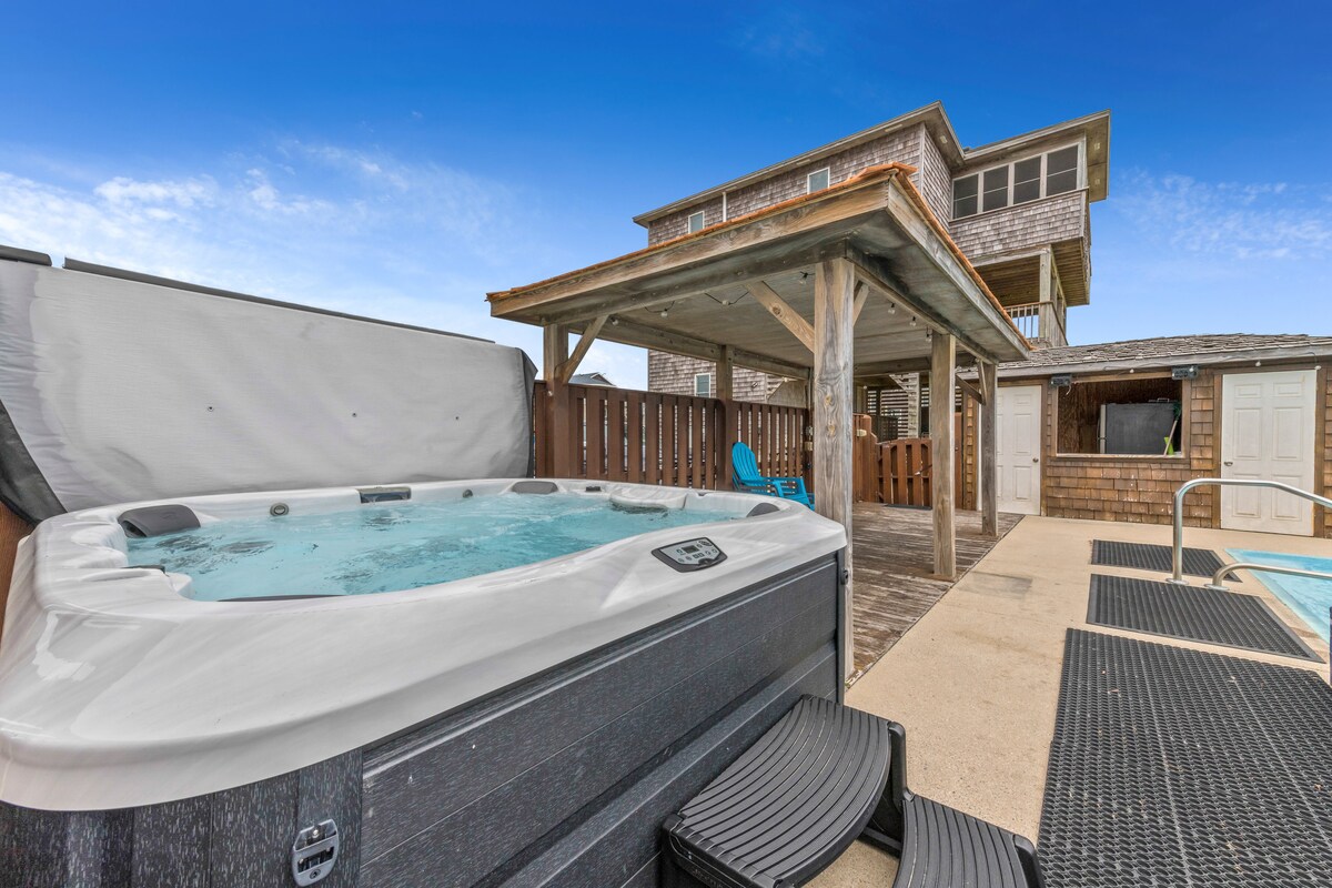 Discount avail for extended stays Enjoy this cozy beach house, walking distance to the Atlantic Ocean and Pamlico Sound. Perfect for beachgoers, kiteboarders, water sport enthusiasts, or holidays with families and friends. Inside, you'll find two living rooms, one with pool table and bar. Large screen TVs with premium cable and surround sound in each. Enjoy stargazing while relaxing in the hot tub on the deck. Located in the tri-villages, close to dining & shops.