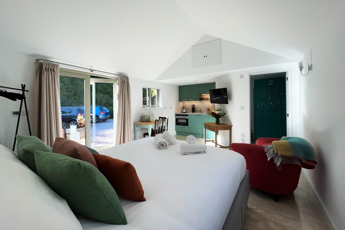 レビュー164件、5つ星中4.96つ星の平均評価電気自動車充電器付きのモダンなダーティントンのガーデンスタジオ