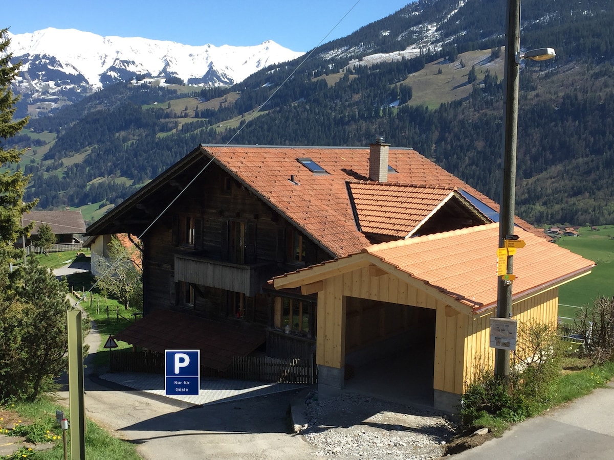 新しく改装された非常に明るい禁煙の1.5ルームアパートメント。40平方メートル。 一戸建て住宅の1階にあります。愛情を込めて実用的に装飾されています。日当たりが良く静かな場所。テーブルと椅子、ラタンの座席エリアを備えた広いテラス。緑の景色を眺めてリラックス。 また、あらゆる種類のアクティビティのための完璧な出発点でもあります。冬はスキー。夏はハイキング、サイクリング。グシュタード、トゥーン、ベルン、インターラーケン、モントルーなどの観光地へのアクセスも良好です。敷地内全体で喫煙は禁止されています。