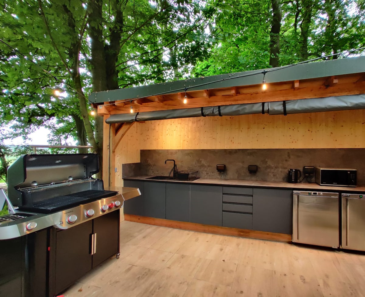 Our brand new listing is a truly unique woodland retreat with a luxury super king bed, dedicated private hot tub & 65 inch tv. Perfect for a couple get-away, this place will take your breath away. Nestled in our remote private woodland on our farm estate this little gem is in touch with nature yet fully fitted with all the home comforts you need. Additionally the woodland retreat includes: 1x private bathroom, a fully fitted outdoor kitchen, WiFi and a bespoke oak outdoor dining table.