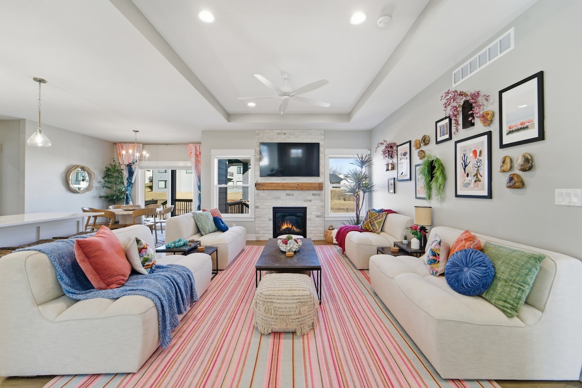 この2寝室2バスルームのエンドユニットは自然光でいっぱいです。 ビジネスや家族旅行に最適な場所です。 この広々としたデザインは、十分な空間を確保しています。 特徴は、特大のアイランド/朝食バー、フルサイズのランドリー、キングサイズのベッド、フルサイズのベッド2台、広々としたリビングルームです。 次の旅先のわが家での滞在をお楽しみください。あとはお任せください。 この宿泊施設には、ガレージ1台分と無制限の駐車場、無料YouTube TV付きの高速Wi-Fi、シェフ仕様のキッチンも備わっています。