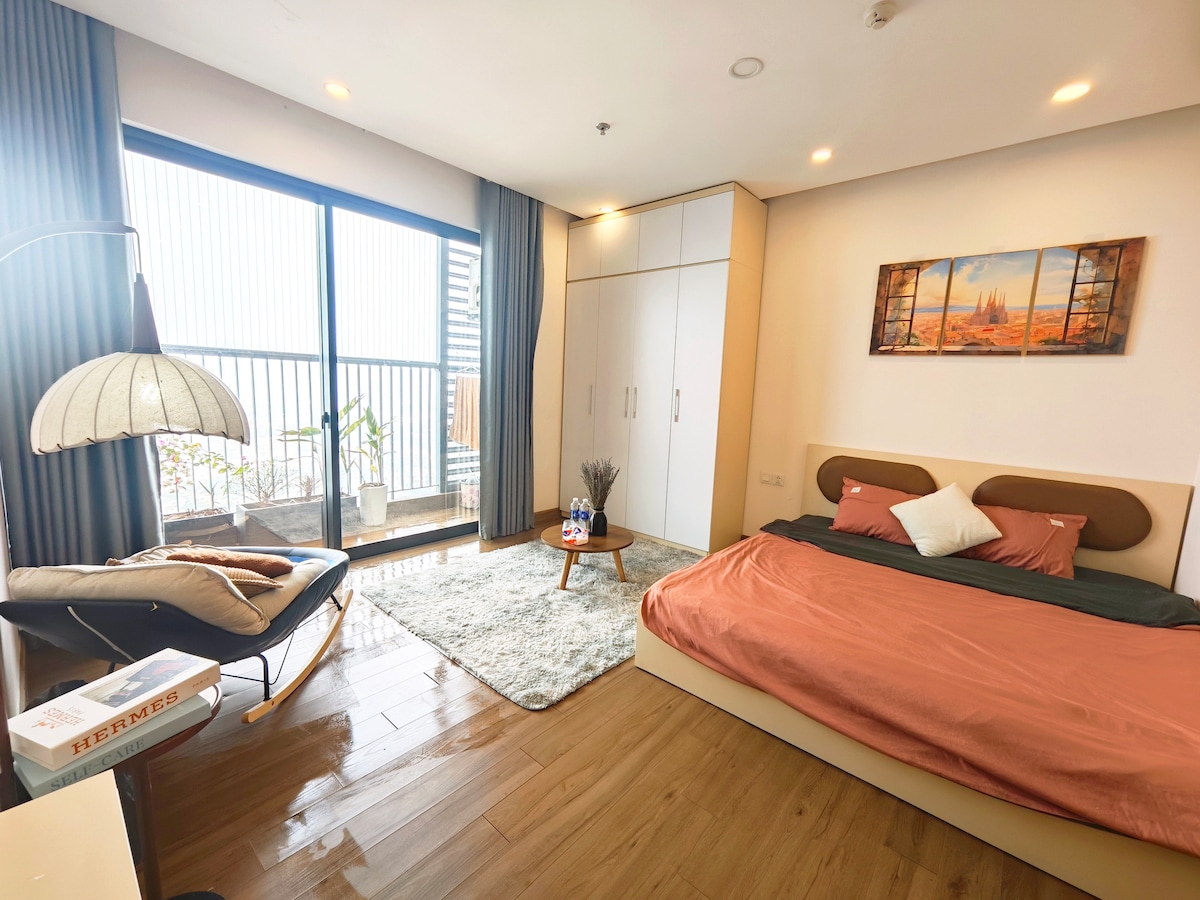 このアパートは2025年6月にオープンしたばかりです。ベトナムの文化的要素と融合したミッドセンチュリースタイルで、細心の注意を払って設計されています。何よりも重要なのは、ホアンキエム地区に位置していることです。有名なトレインストリートのコーヒーチェックインスポットまで徒歩5分、ハノイの旧市街までさらに5分です。中心部に位置するこちらの宿泊先で、おしゃれな滞在をお楽しみください。