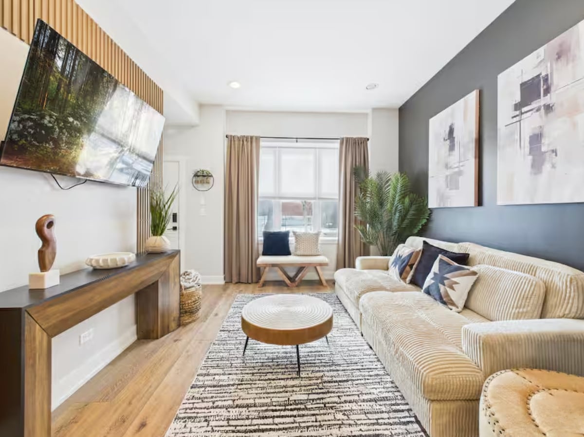 シカゴで最高の休暇へようこそ。ダウンタウンからわずか10 ~15分の、スタイリッシュでリラックスできる隠れ家です。クイーンベッドの寝室2室、85インチのスマートテレビと暖炉を備えた居心地の良いリビングルーム、モダンなキッチン、ジャグジーバスをお楽しみください。ガゼボ、豪華な座席、ビリヤード台、屋外テレビを備えた、プライベートな420フレンドリーな裏庭のラウンジに足を踏み入れましょう。快適さ、プライバシー、シカゴの人気アトラクションへのアクセスの良さを求めるご家族、カップル、週末の探検家に最適です。空港送迎もご利用いただけます。