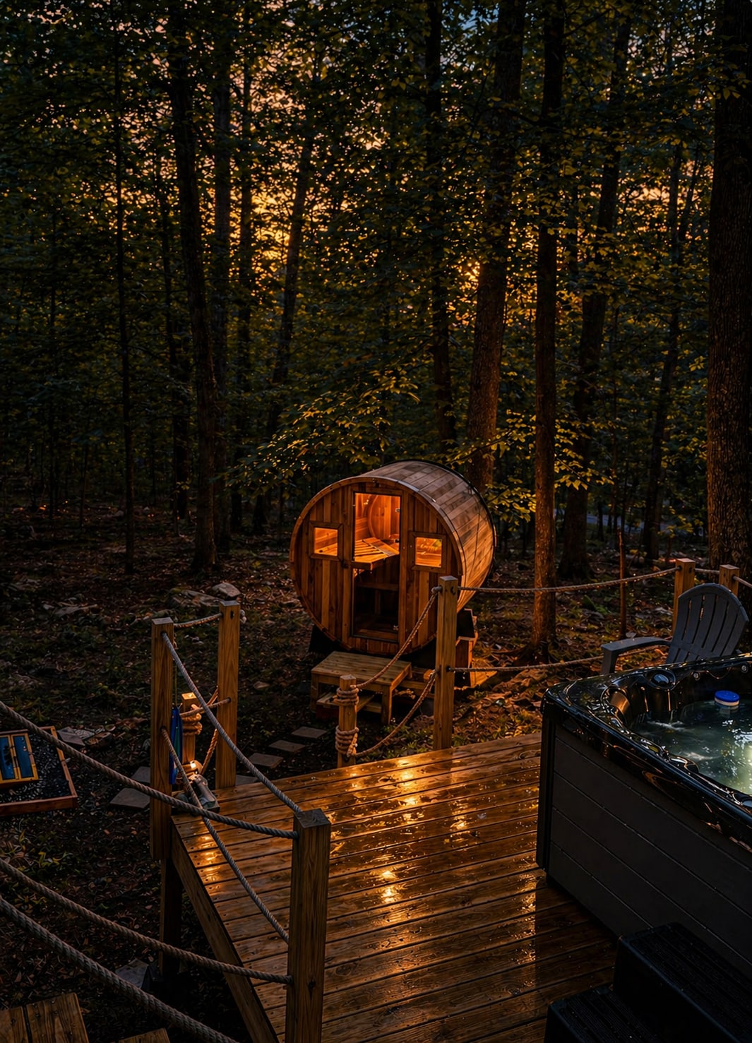 レナーキャビン - 寝室2室、露天風呂・ジャグジーとサウナ付き