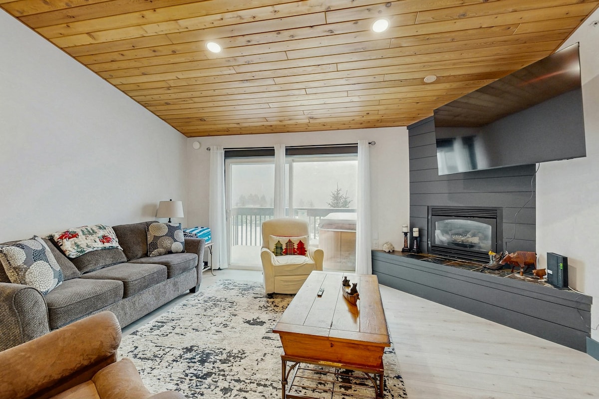 露天風呂・ガス暖炉付き、渓谷の眺望が楽しめる2寝室のコンドミニアム