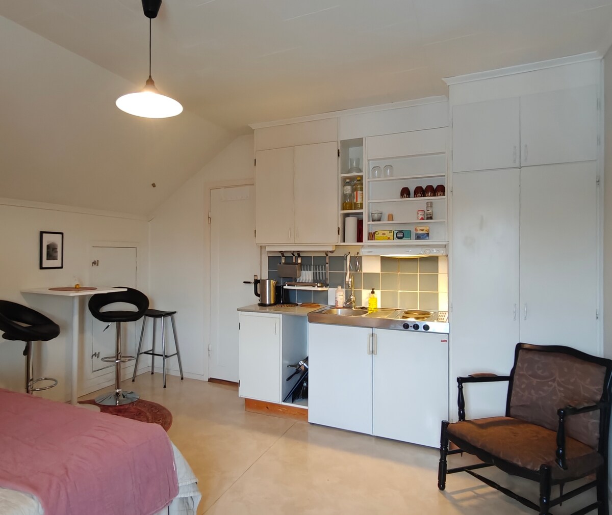 Tervetuloa kotiin, jossa eletään oikeasti. Valoisa ylimmän kerroksen Loft -tyylinen koti sijaitsee ydinkeskustassa, tunnelmallisen vanhankaupungin ja keskustan palveluiden välittömässä läheisyydessä, Kokkolan pääkadun varrella. Rautatiasema 150m, yliopistokeskus 1.8km, K-supermarket 750m Asunnossamme on 160 cm parisänky ja mahdollisuus lisävuoteena ilmapatjaan 120 cm. Vierailla on käytössään Wifi, ÄlyTv ja ilmainen P-paikka tarvittaessa sisäpihalla. Kotimme on remontoitu keväällä 2025.