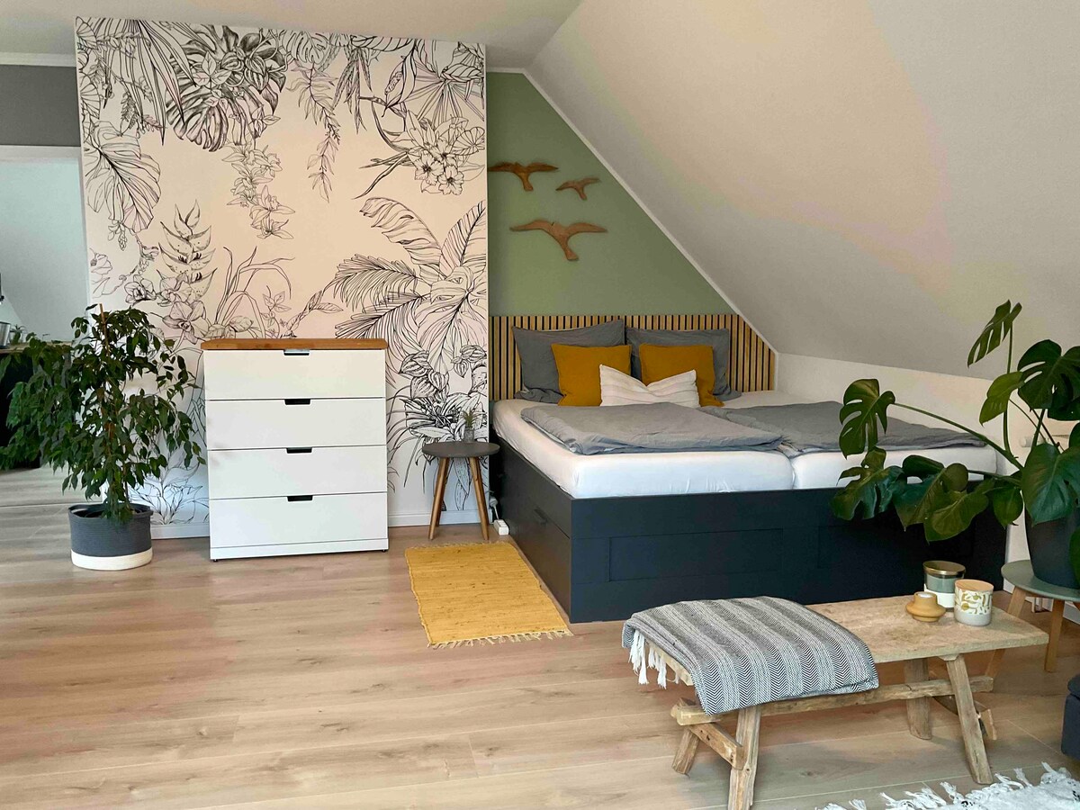 美しい畑や緑の中でくつろげる静かな場所をお探しでしたら、ここはぴったりです。 モダンなアパートには、広いリビング/ダイニングエリア、ダブルベッドの寝室、広いバスルームがあります。 サウナと自転車を備えたガーデンハウスも少額の料金でご利用いただけます。 オルデンバーグの魅力的な街(15 km)は、ショッピングに最適で、多様な文化イベントやナイトライフでも知られています。