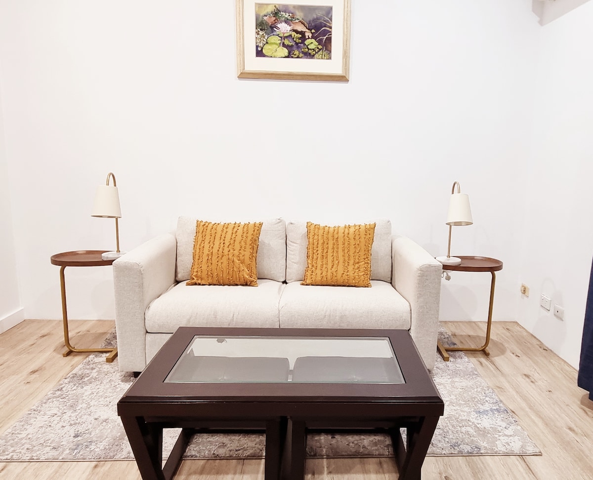 エアコン完備のスタイリッシュな1ベッドルームのフラット+プールアクセス