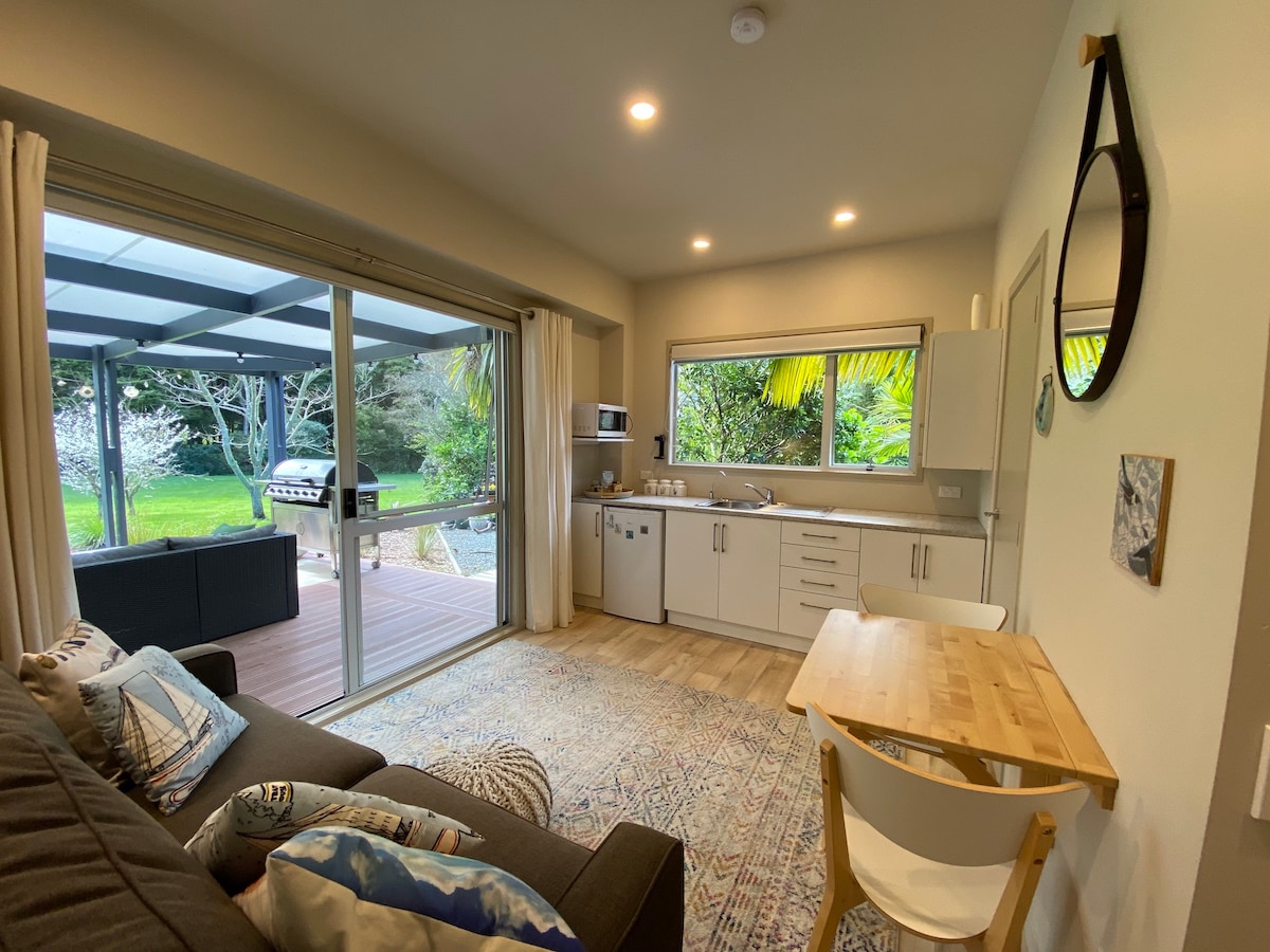 Makai Lodgeはブリームベイの壮大な景色を望むことができ、小さなライフスタイルブロックに位置しています。ワイプから5分以内、オークランドから1.5時間の便利な場所にあるので、のどかな休暇を過ごすことができます。 典型的なニュージーランドの休暇を楽しみながら、食器洗い機、ヒートポンプ、洗濯機、スマートテレビなどの現代的な設備をご利用いただけます。 休暇中にやりたいことはすべてすぐそこです。 Makai Lodgeは、180度の景色を楽しめるモダンな2ベッドルームのアパートです。