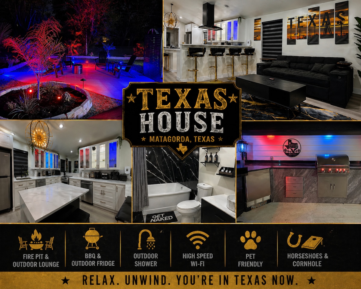 プライベートでありながら中心部に位置するファミリー向けのお家でリラックス&リフレッシュ。歴史的なダウンタウンからわずか数ブロックですが、パティオ家具、ファイヤーピット、バーベキューピットなど、家族向けの屋外スペースが豊富にあります。屋内では、大きな深めのバスタブでリラックスできるアメニティをお楽しみください! テキサスの暑い日には、1ブロック先にある近所のスプラッシュパークをお楽しみください! マタゴルダビーチまでわずか28マイル。 ショッピング、ダイニング、映画、ボウリング、ミュージアム…わずか数分! ぜひお楽しみください!