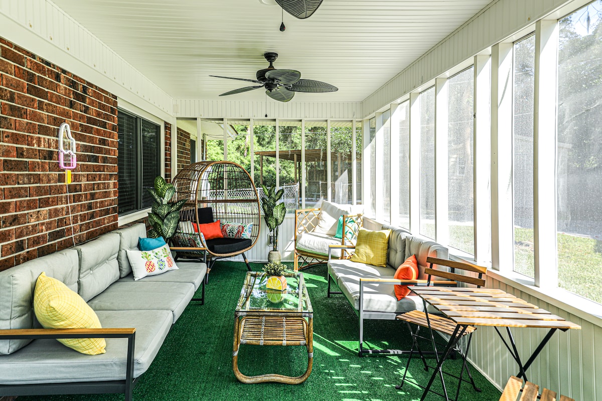 サバンナのオアシスに逃避行!このスタイリッシュな3ベッドルーム、2バスルームの家は9人まで快適に収容でき、家族連れやペットに最適です。7人乗りのホットタブ、フェンス付きの庭、設備の整ったキッチンをお楽しみください。歴史的なダウンタウンからわずか9分、タイビー島ビーチから12分の理想的なロケーションです。サバンナを探索するのにぴったりな拠点です! 割引については、今すぐメッセージをお送りください! ライセンス番号:023617