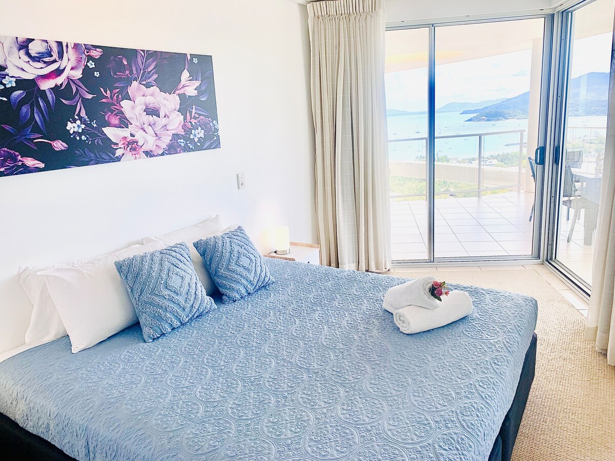 Perfect Seaview accommodation for families or two couples. Two bedrooms both with king size beds and 2 bathrooms ★Complimentary wine & snack ★ Large Balcony overlooking Airlie Beach and the Whitsunday Islands ★ Pool and spa located in resort complex ★ Secure undercover car park for 1 car ★ Fully equipped kitchen Free wifi ★ 10 minute walk to the main street Airlie Beach ★Safe Neighbourhood and secure complex. ★Family/ kid friendly and more than welcome STRICTLY NO SCHOOLIES