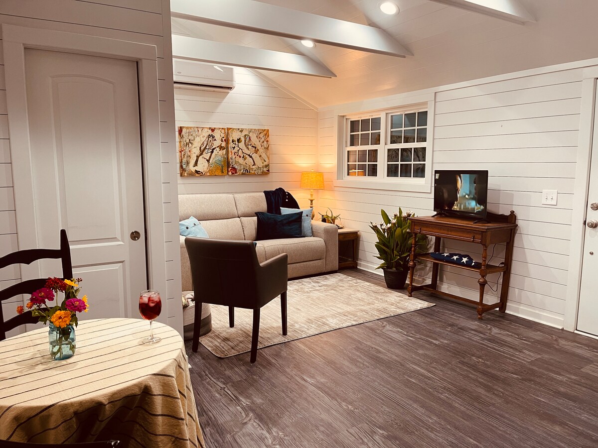 ブルーグースのコテージは、リラックスしたり、リモートワークをしたりするのに最適な空間です。多年生植物や在来植物がたくさんある庭園に囲まれています。フロントポーチのロッキングチェアからは、ハチドリが花から花へ飛び回るのを眺めることができます。 コテージには、南部スタイルのスクリーン付きポーチがあり、青い天井と快適な座席がたくさんあります。 駐車場は、コテージにつながる照明のあるブリーズウェイの下にあります。