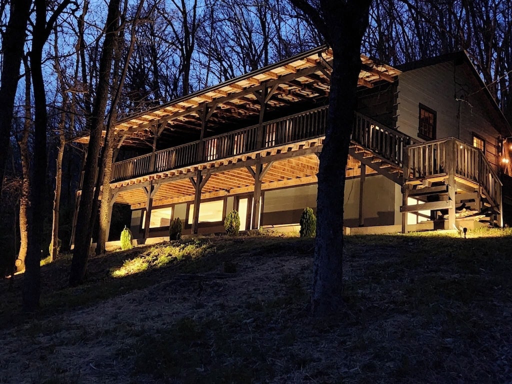 Escape to a secluded storybook cabin tucked into the rolling hills between Franklin & Leiper’s Fork. This rustic hideaway features dual master bedrooms, cathedral ceilings, & a myriad of indoor & outdoor nooks to explore. Sip your morning coffee on the old wrap-around porch, or cozy up w/ a good book in the detached mini writer's cabin. Enjoy sweeping forest views, stunning multi-level deck, and fully stocked kitchen. Close to all the action in nearby Franklin & Nashville!