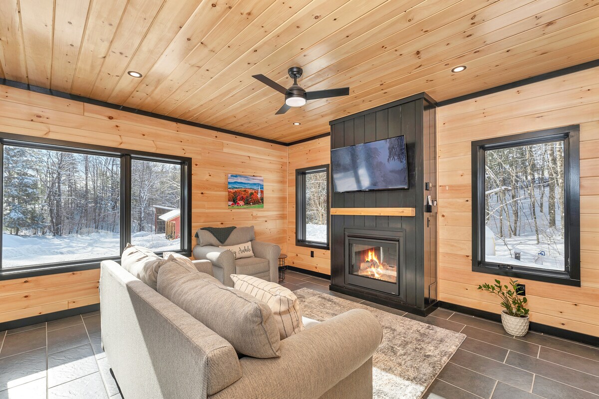 This charming and elegant little cabin will transport you into nature. The feeling of camping outdoors with indoor amenities. Part of the brand-new campsite, Trailside Stays that is conveniently located alongside the ski and mountain bike trails at Green Woodlands. This tiny house features 1 high quality queen-size bed, linens, kitchenette, large picture windows, bathroom with shower, heating and A/C, outdoor seating and grill top fire pit. Don't see your dates available? Check the other cabins!
