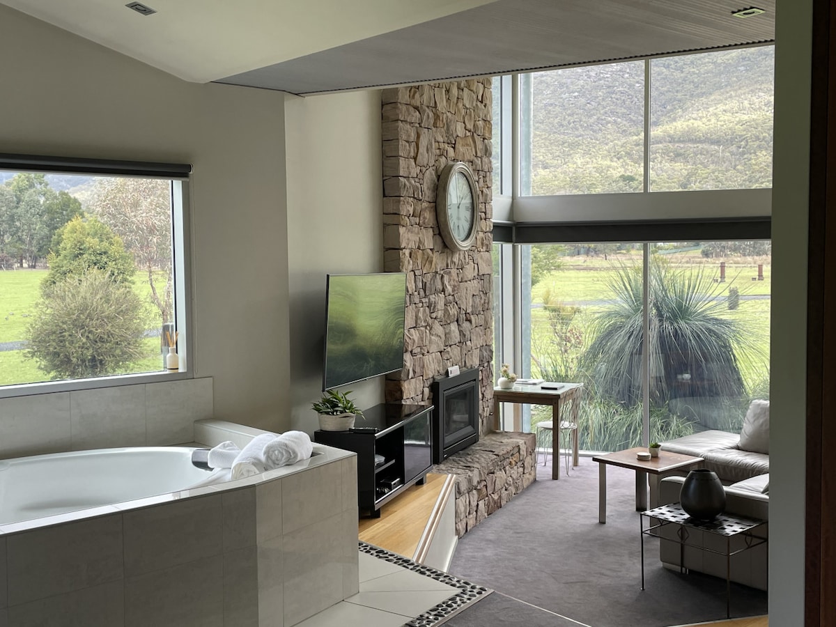 レビュー:とても素晴らしく、スタイリッシュで、最高のロケーションにあり、静かです。今まで訪れた中で最高です。 壮大なグランピアンズを背景に、ホールズギャップまで徒歩ですぐです。 静かで、完全に自立した、モダンで快適なEscapeは、心地よく、クリエイティブな、スタジオスタイルのカップル向けの隠れ家です。スパ、薪ストーブ、リラックスできる高床式デッキ(私のお気に入り)、設備の整ったキッチン、地元の写真、素晴らしい映画の数々をお楽しみください。 Escapeは、プライベートで静かでありながら、「The Gap」からもすぐの場所にあります。