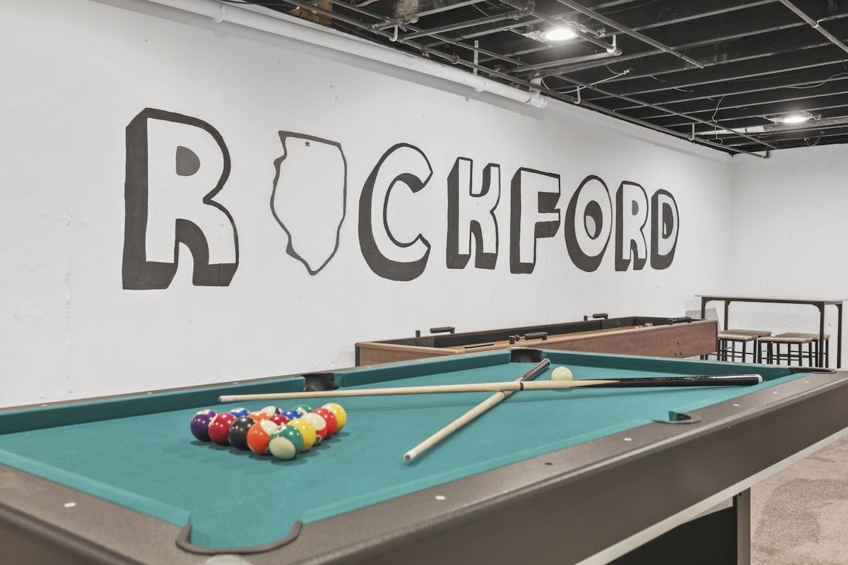 Big group? Big fun! This place is CLOSE to everything you need, and FAR from boring. Good times, Great vibes, Zero FOMO 😉 🏆 Infinity Game Table 🎯NEX Playground (Virtual motion-game console) 😎 Indoor hot tub 🕹️Classic arcade games 🎱Pool table / Ping Pong Table 🛏️ King bed in every bedroom 🍳 Fully equipped kitchen 🛜 Fast Wi-Fi 🌸 3 mins – Anderson Japanese Gardens 🍻 6 mins – Downtown Rockford 🛍️ 10 mins - Shopping, Restaurants ✈️ 14 mins – RFD Int’l Airport