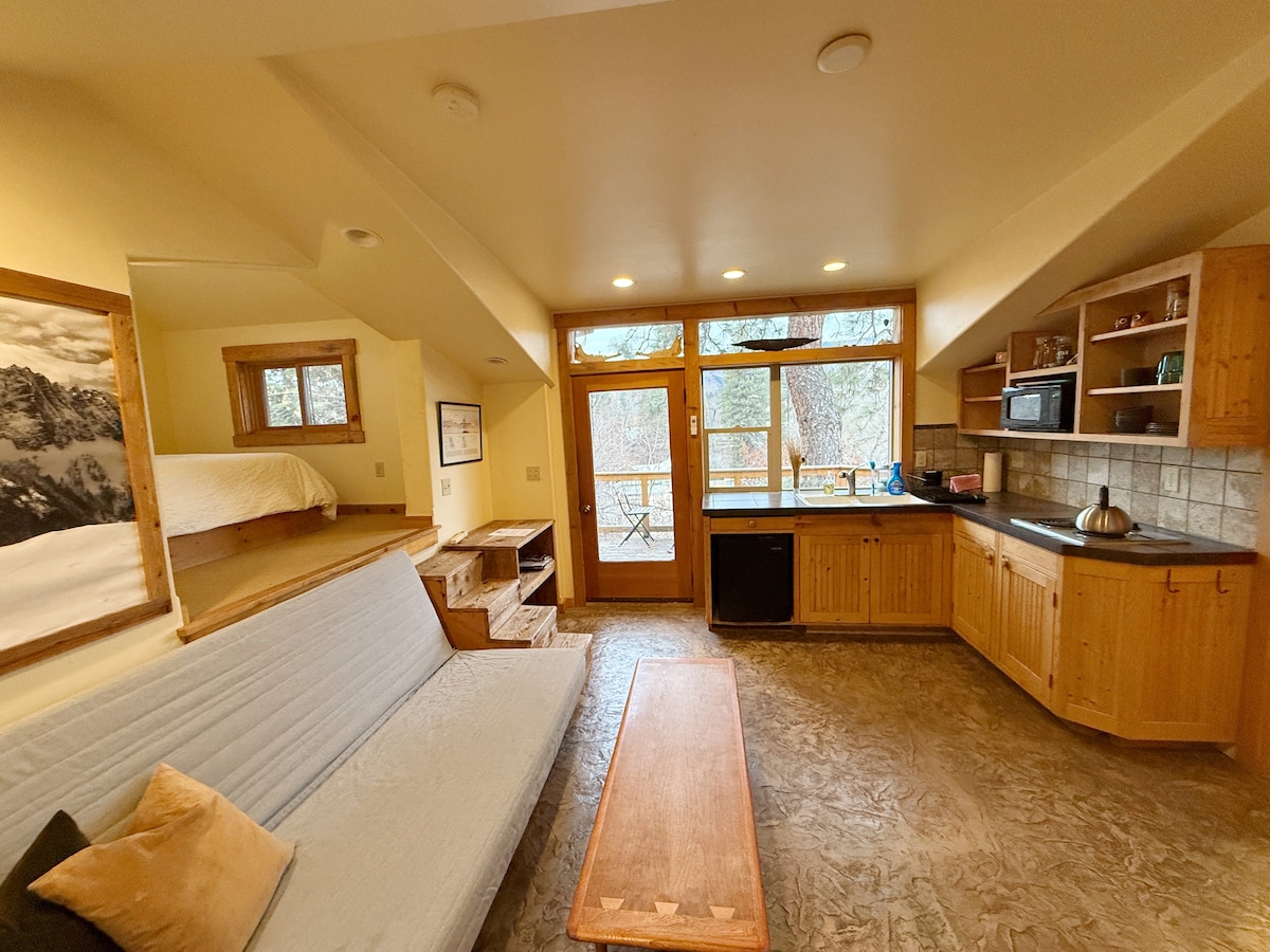 The Silverstar bungalow is great for those who want complete independence from the happenings of the hostel. While guests are welcome to the hostel communal areas, you’ll find you have everything you need in the bungalow with its own kitchenette, full bathroom, and large patio overlooking town. Perfect for a weekend getaway.