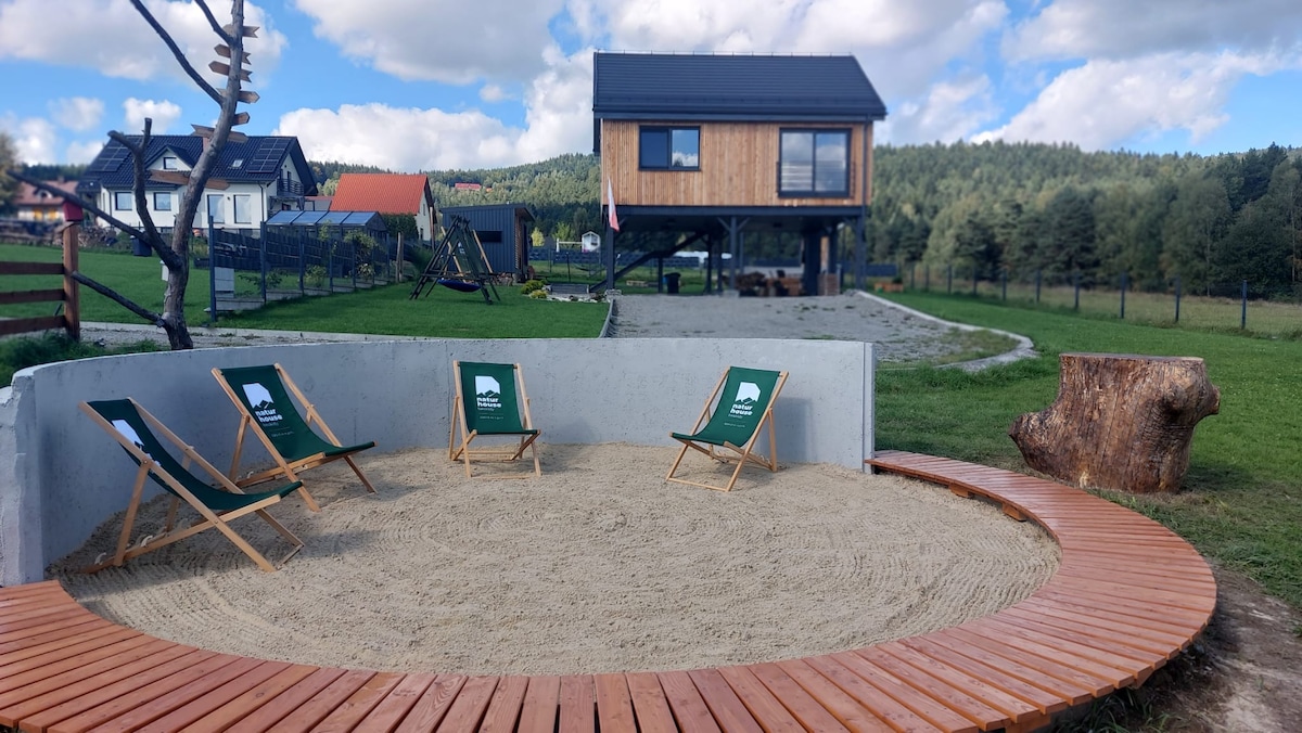 ナトゥールハウス・ベスキディへようこそ! この場所のユニークさは、家が地上3メートルに浮いているという事実によって強調されており、野生動物や周囲の山頂を観察する素晴らしい機会を提供しています。 ナチュアハウスをさらに際立たせているのは、ポーランドで唯一の場所である月の木で作られたユニークなデザインです。私たちのエコロジカルな家は、自然との調和を念頭に置いて設計されており、温かくリラックスした雰囲気を作り出しています。