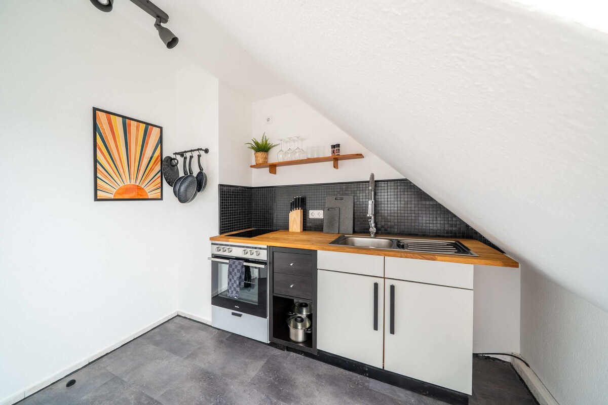 ヴィッテンの中心部にあるバルコニー付きの明るい50㎡のアパート。 わずか10分で列車でボーフムまたはドルトムントに、A44を経由してルール地域の他の都市に素早く到着できます。商店やレストランは徒歩圏内にあり、市内中心部は5分です。快適さと良好な接続性を重視する家族連れ、カップル、出張者に最適です。 リビングルームのソファはベッド(140×200)に変換できるので、合計4人がアパートに宿泊できます。