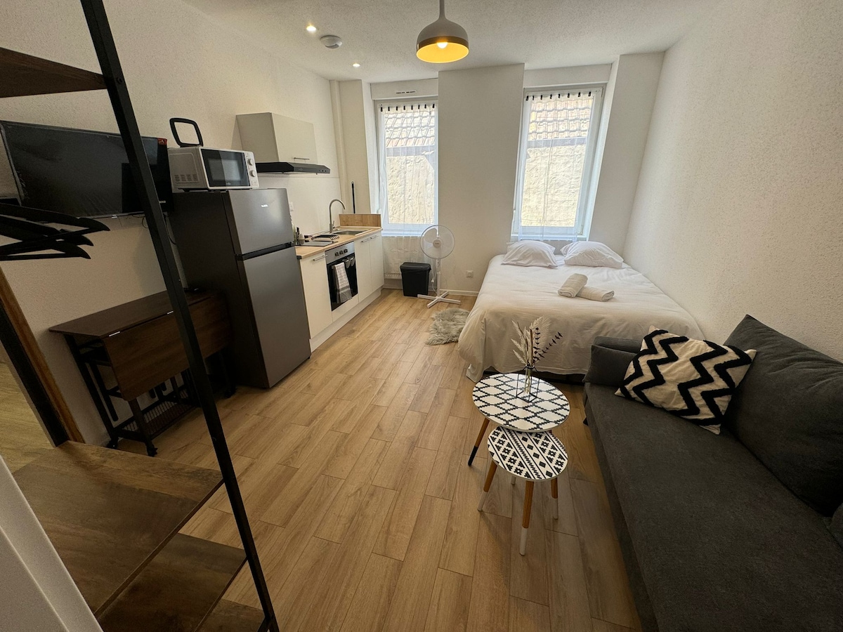 ミュルーズの中心部に位置する、快適で改装された小さなアパートで、商店街、歴史地区、市場まで500メートルの便利な場所にあります。 ベッド160x200、キッチンとソファーベッド150x200、バスルーム(バスタブ付き)。 すべての設備: - リネン類(シーツ、タオル) - 基本的な生活必需品(コーヒー、紅茶、調味料、洗剤、トイレットペーパーなど)。