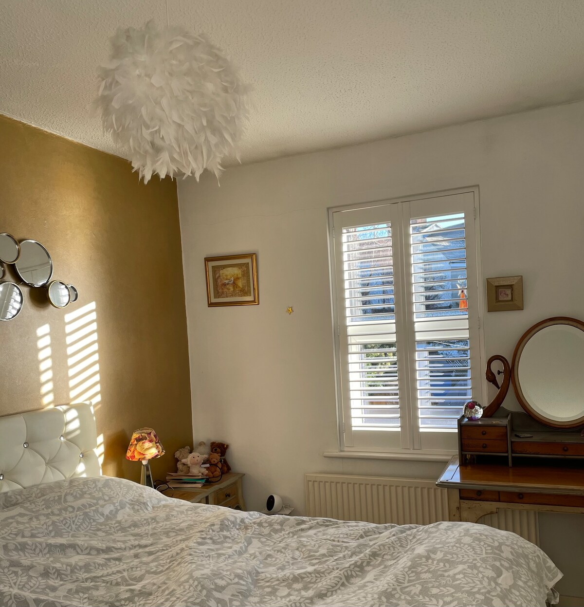 庭にある私のキャビンへようこそ。 キャビンへはサイドゲート/庭からアクセスできます。 ダブルベッド1台で2名様用です。 家には、専用のシャワールーム/トイレとキッチンエリアがあり、便利です。 キャビンはゲームルームでもあり、ゲストは卓球、テーブルフットボール、ダーツボード、ゲームをご利用いただけます。 家のすぐ外の道路に駐車場があります。