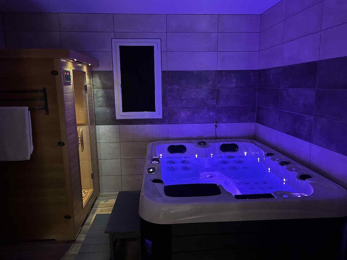 ✨恋人や友人と一緒に魔法の瞬間を過ごしたいですか?❤️ 星空の下、ロマンチックな雰囲気のプライベートグランドスパで、時間を忘れて過ごすひとときをお楽しみください。熱帯の旅への招待状です🌴 💦素晴らしいウェルネスエリアでリラックスしましょう • XXLサイズのスパ •サウナ •スマートテレビ 🌿夏でも冬でも、庭園を眺めながら、忘れられない滞在をお楽しみください 🏡ロッジ&スウィーティ❤️スパ、静かな田園地帯に位置する美しい石造りの家