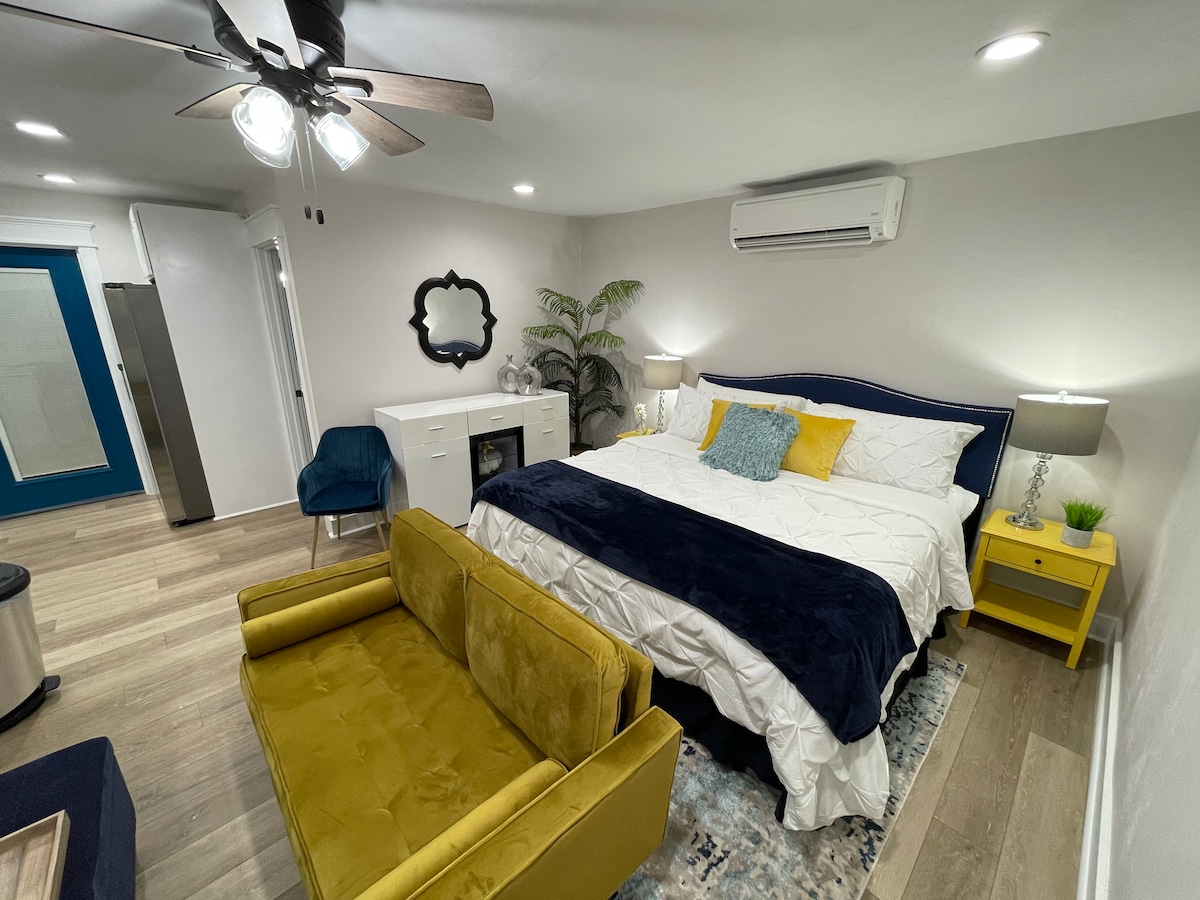 中心部に位置する静かなエリアにある、居心地の良いモダンなワンルームでの滞在をお楽しみください。 宿泊施設はカラフルな模様とモダンなアクセントで上品に装飾されています。 ご自宅にいるかのようにくつろぐことができます。 ダウンタウンや大学まで車でわずか10分で、5分以内のパークウェイにはさまざまなお店やレストランがあります。 私たちのお気に入りのカフェの1つであるThe Bada Beanは、素晴らしい朝食とブランチを提供しており、数ブロック先(徒歩圏内)です。